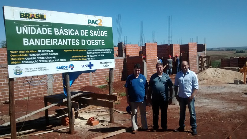 No Distrito de Bandeirantes do Oeste o município constrói uma moderna Unidade Básica de Saúde e em breve finalizará a reforma do ginásio de esportes com a obra de paisagismos e pintura da parte externa.